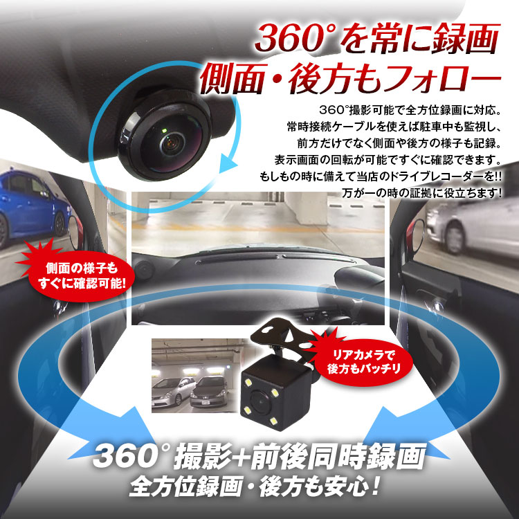 360°カメラとリアカメラの同時録画で死角ナシ!