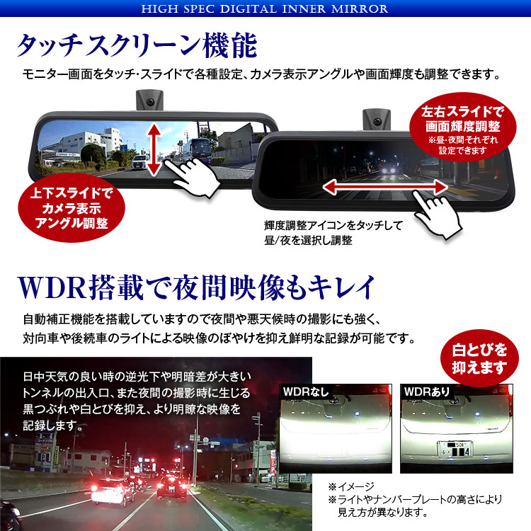 逆光に強いWDR搭載により明暗差を補正し鮮明で綺麗な映像を表示。悪天候(雨や雪、霧、夜間の路面凍結)時に視認性を高めます。