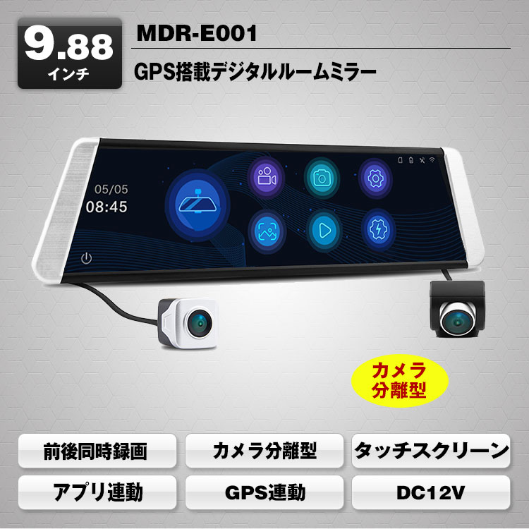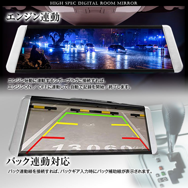 後方視界を映像でサポート 前後同時録画対応・GPS搭載ドライブレコーダー機能付きの電子バックミラー 積載物などの車内の状況を問わず車両後方の視界をクリア、後方の広い範囲の状況がわかり、より安全性向上!