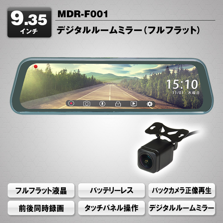 9.35インチのフル画面タッチパネルで、画面を上下スライドするとカメラの視野角度が調整でき、より広い範囲を確認できます。大画面の映像とスムーズな画面操作が可能です。自動調光機能搭載で、暗い場所も明るい場所も鮮明に録画できます。