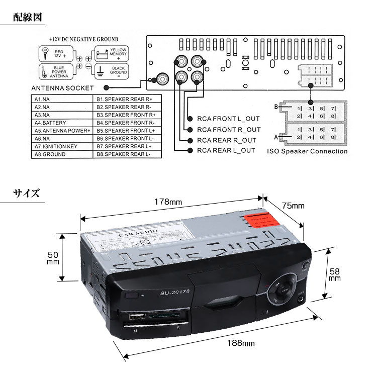 - 対応メディア : USBメモリ/32GBまで、SDカード/32GB[SDHC]まで MP3、WAV、WMA、FLAC