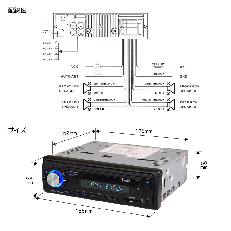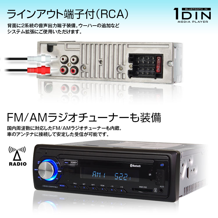 - ラジオ : FM/76.0〜90.0MHz、AM/522-1620kHz
