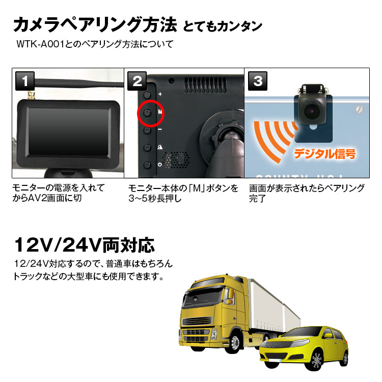 12/24V対応するので、普通車はもちろんトラックなどの大型車にも使用できます。