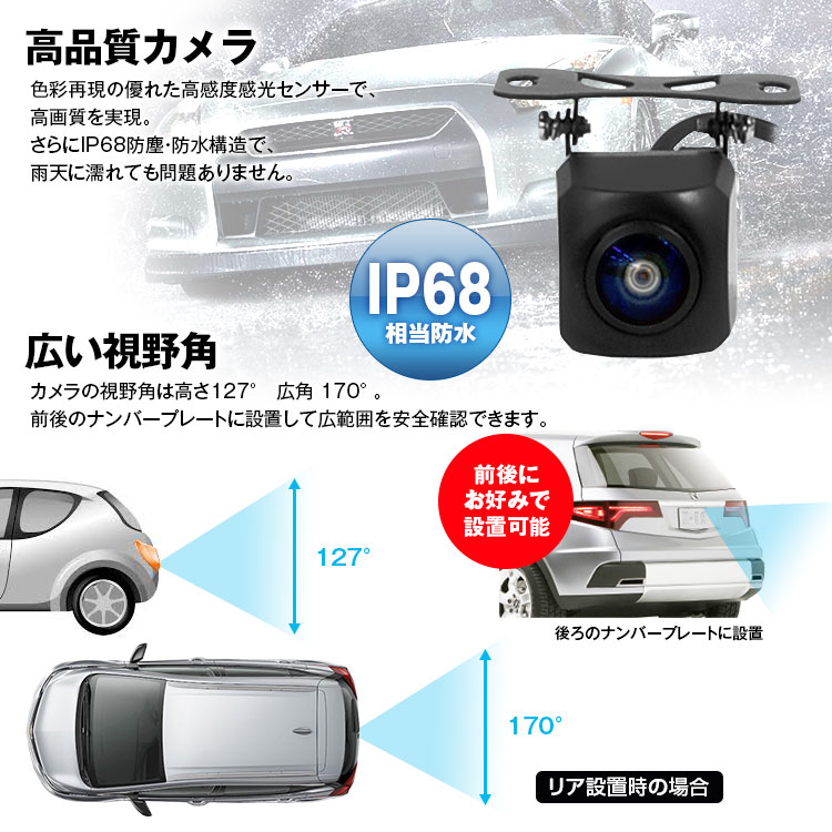 WTK-A001の5インチモニターと接続するオプションのカメラです。前後のナンバープレートに設置して安全確認することができます。