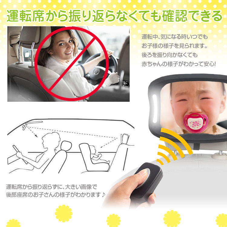 運転席から振り返らずに、大きい画像で後部座席のお子さまの様子がわかります♪