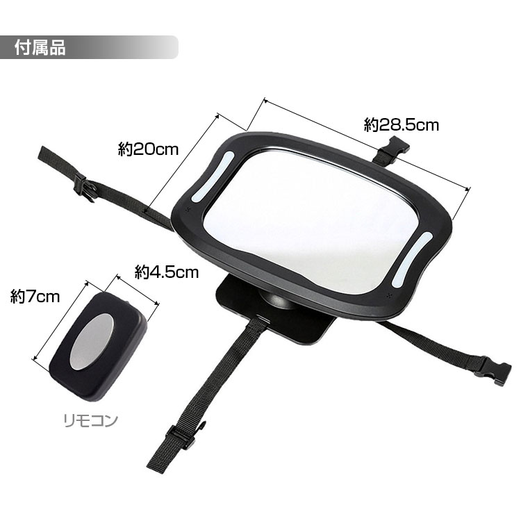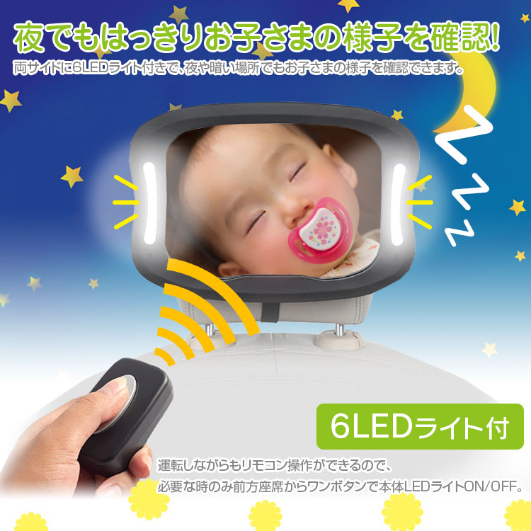 LEDライトで昼夜を問わずお子さまの様子を確認できるベビーミラー