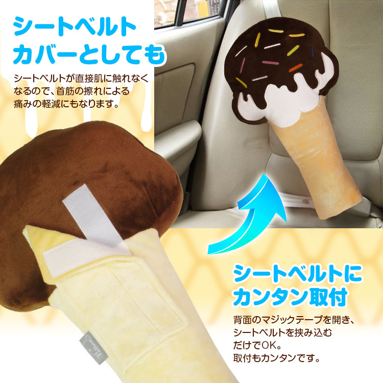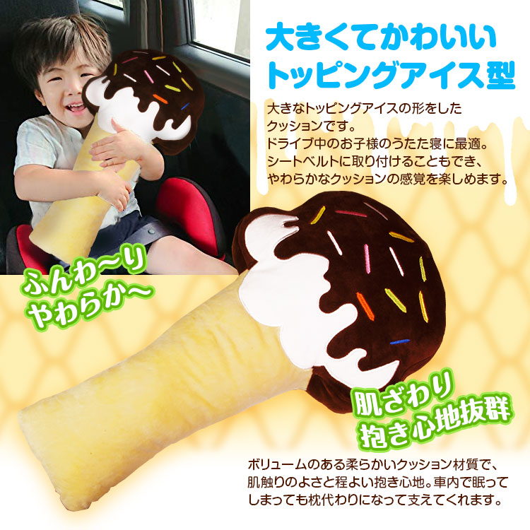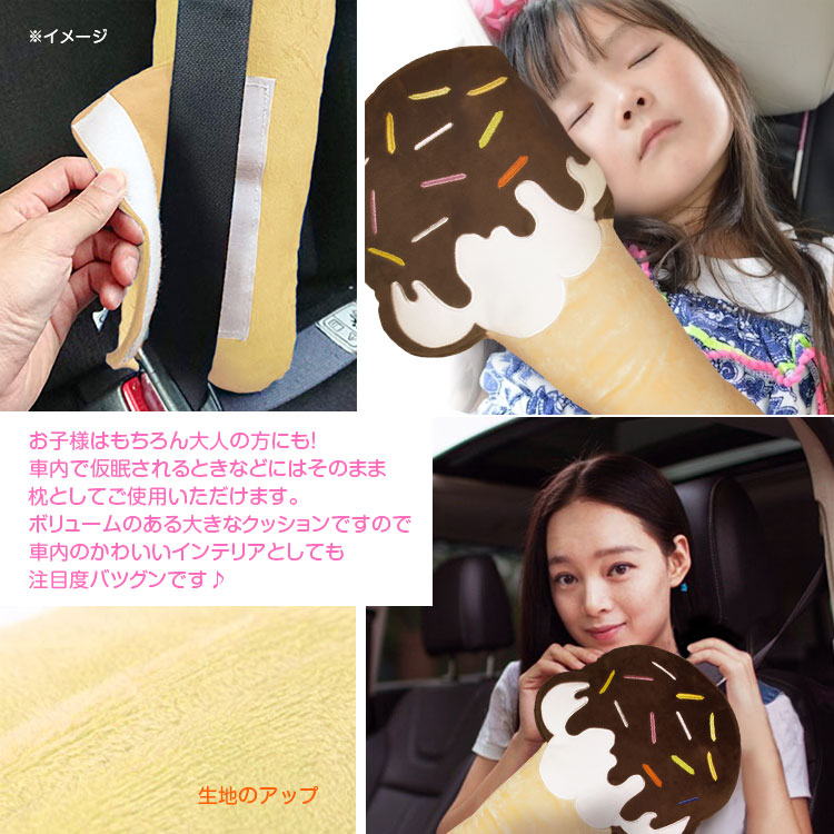 お子様のドライブ中のうたた寝に最適。シートベルトに取り付けるだけで、やわらかなクッションの感覚を楽しめます。