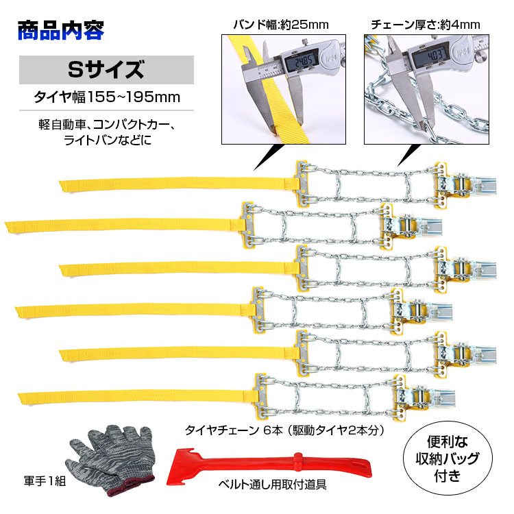 - Sサイズ6個セット:タイヤ幅155-195mm