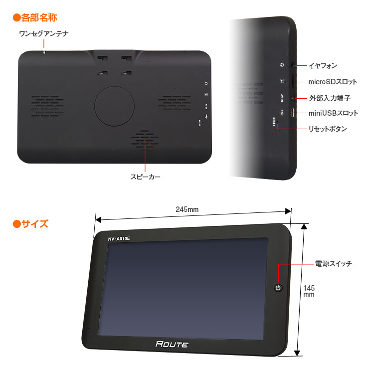本体×1、吸盤スタンド×1、シガーアダプター×1、スタンド用プレート×1、USBケーブル×1、AV入力ケーブル×1、取扱説明書