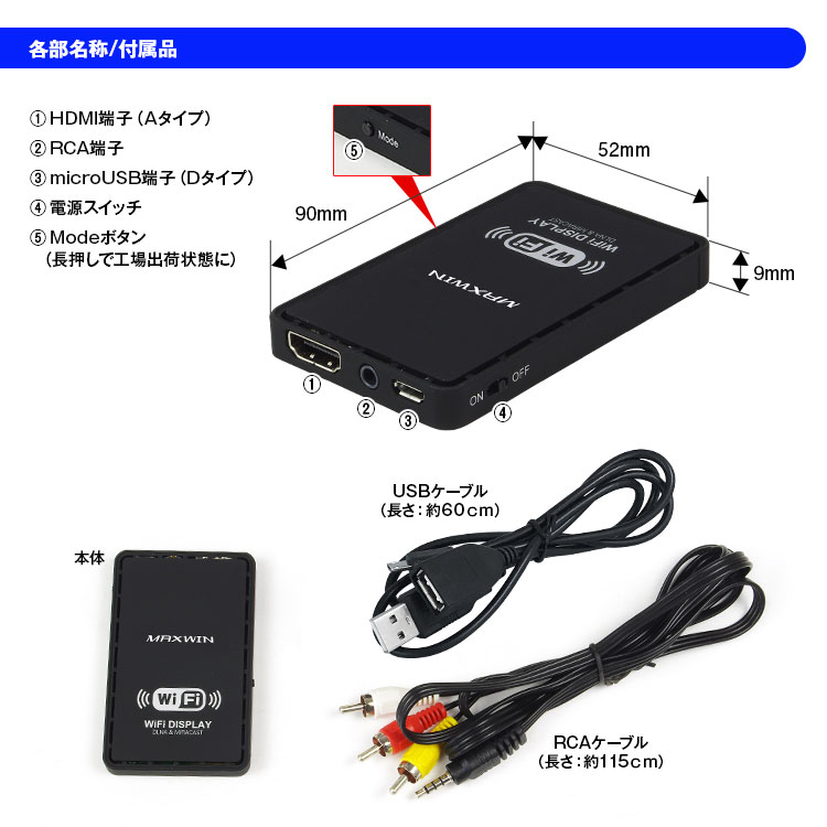 - 対応接続方式: DLNA DMR(WiFi)/Miracast