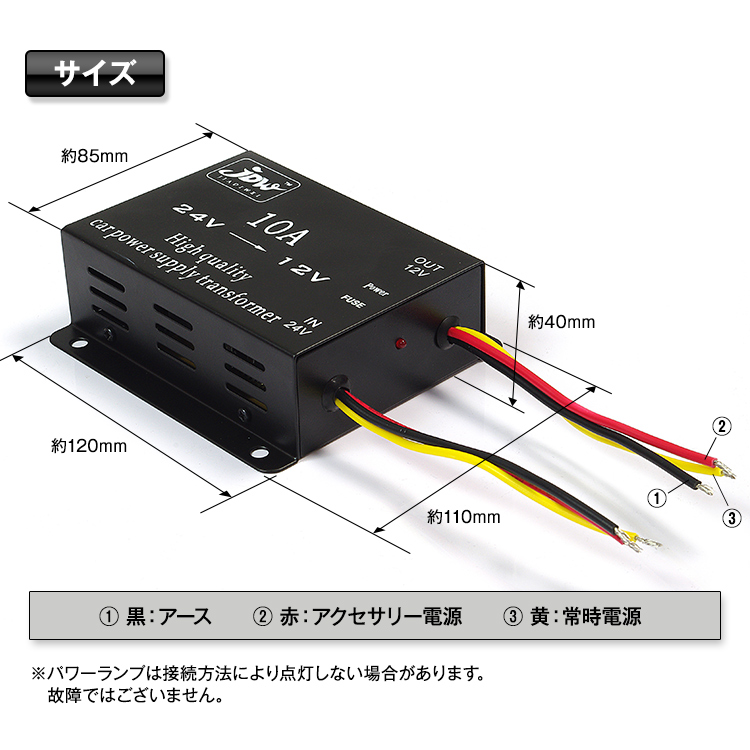 24V車で12V仕様の製品を使用する際にオススメ!通常では電圧が違う為、使用出来ませんが、DC-DCコンバーターを使用する事で24V車でも12Vの電源を供給することが出来ます!