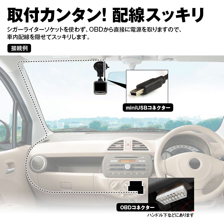 シガーライターソケットを使わず、OBDから直接に電源を取りますので、車内配線を隠せてスッキリします。