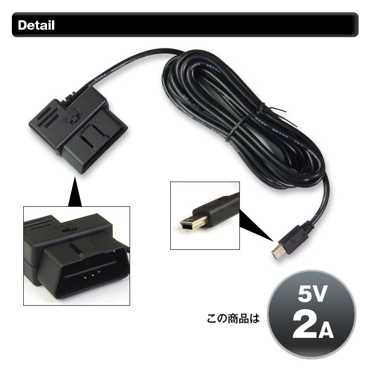 ドライブレコーダーの配線だけではなく、出力電圧DC5V、電流2Aのレーダー探知機/ETC/GPSなどに対応します。