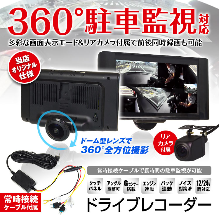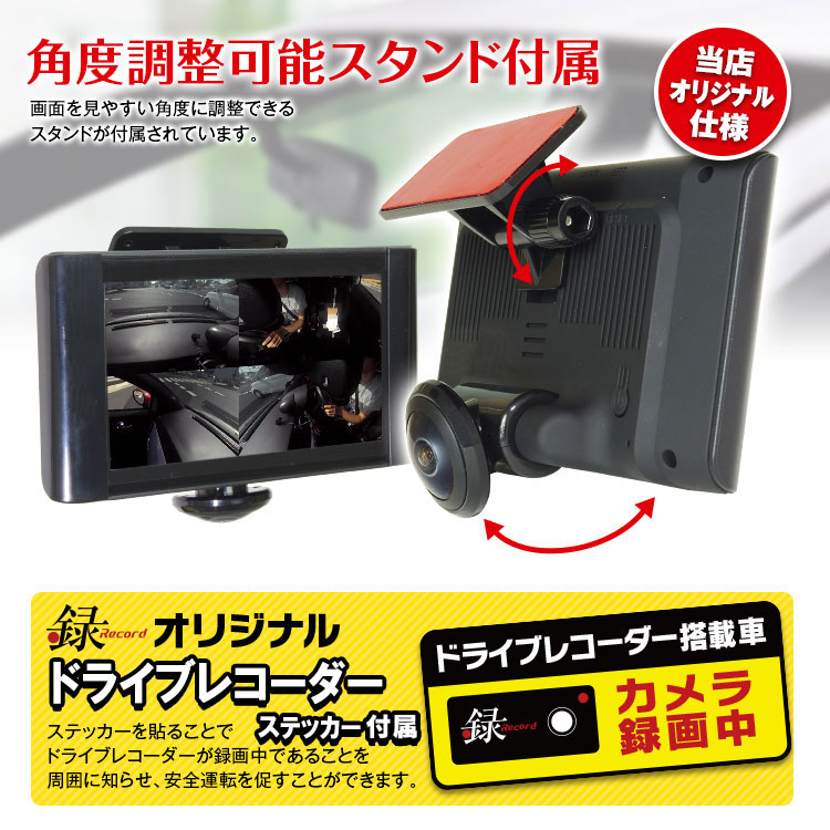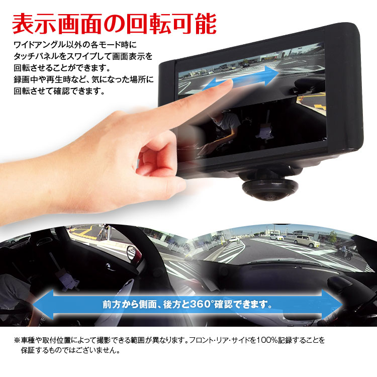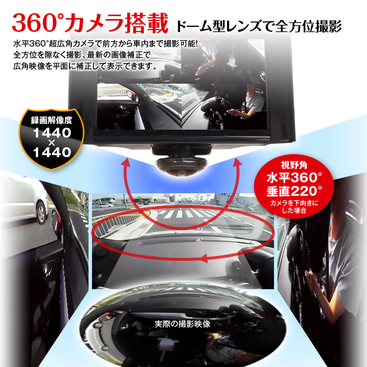 水平360°超広角カメラで前方から車内まで撮影可能!最新の画像補正で広角映像を平面に補正して表示できます。