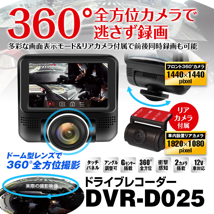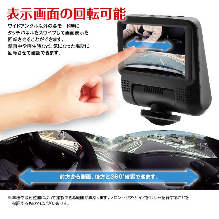 - 視野角 360°カメラ水平360°、リアカメラ水平144°/対角169°