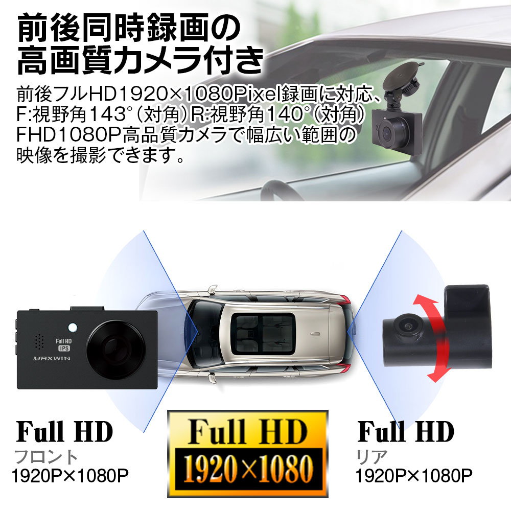 - 録画解像度:フロントカメラ1920×1080P、リアカメラ:1920×1080P