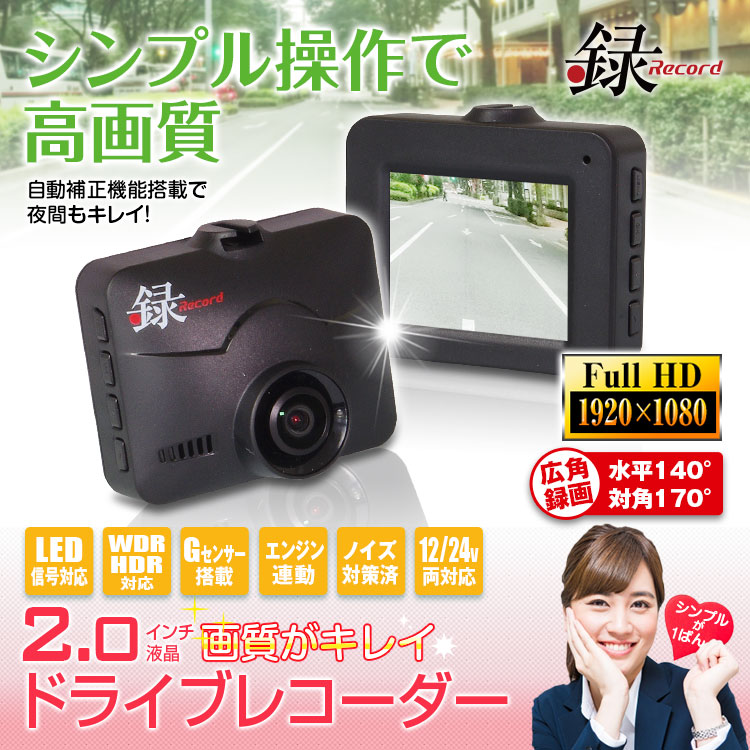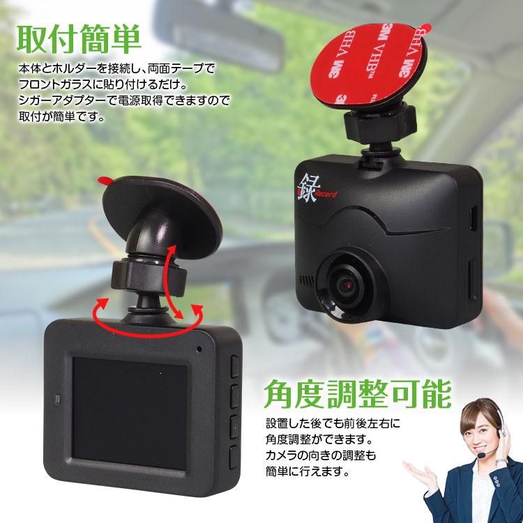 ボディは小型ですが中身は本格的なドライブレコーダーです。フルHD録画対応で高画質、自動補正機能搭載で夜間もキレイ。