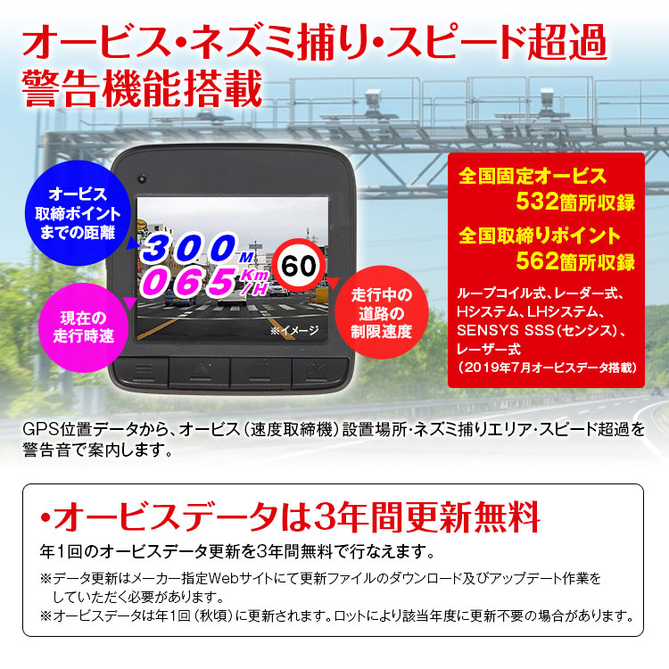 ※一部のオービス・取締ポイントでは警告機能が対応しない場合があります。