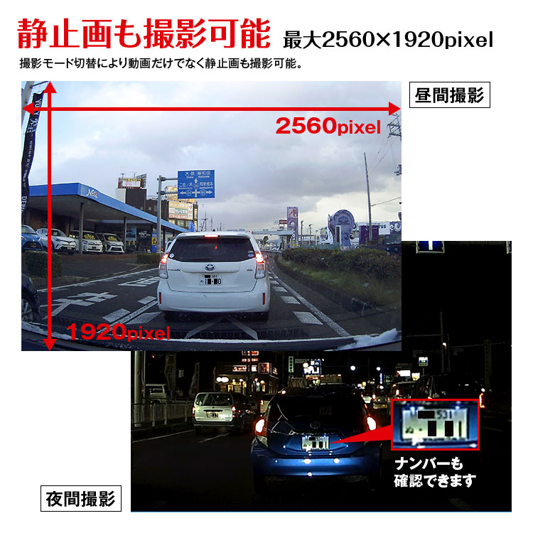 明暗差が激しいトンネルの出入り口や夜間撮影時に生じる黒つぶれや白飛びを抑え、より明瞭な映像を記録します。