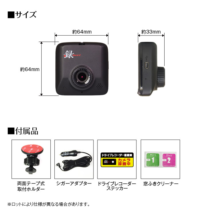 本体×1、取付ホルダー×1、シガーアダプター×1、microSDカード×1、窓ふきクリーナー×1、取扱説明書