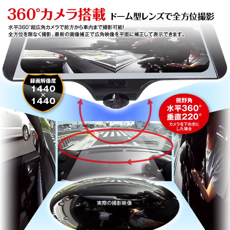 360°カメラとリアカメラの同時録画で死角ナシ!