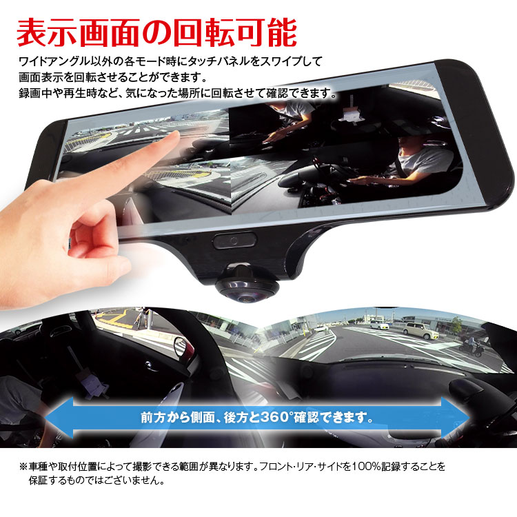画面をスワイプすると表示画面を回転させることができます。録画中や再生時など気になった場所に回転させて確認できます。