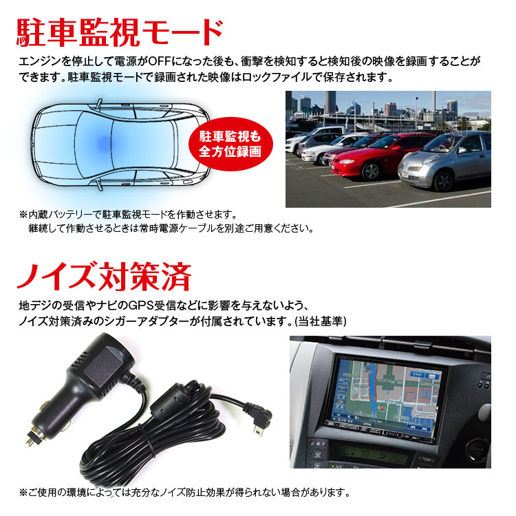 強い振動が感知されるとその時録画されていたファイルがロックされます。大切なデータが上書きされてしまうことがなく、もしもの時も安心です。