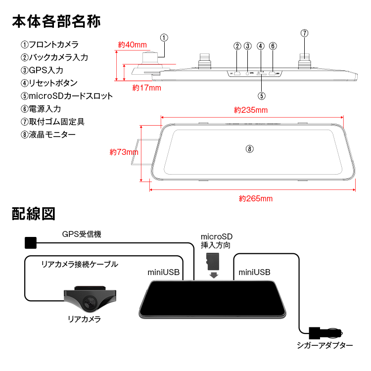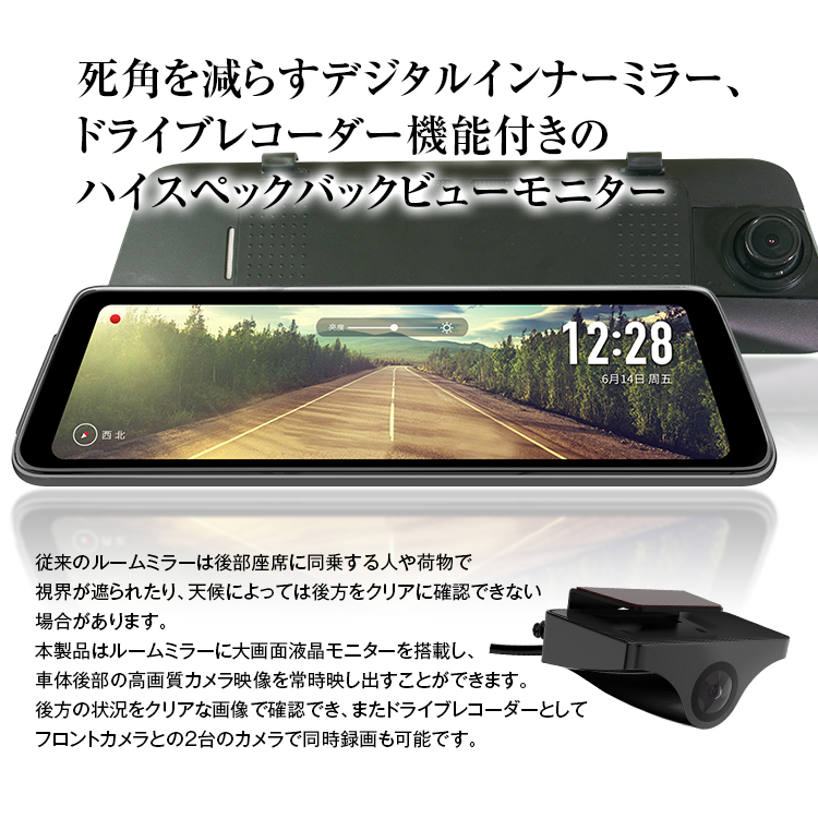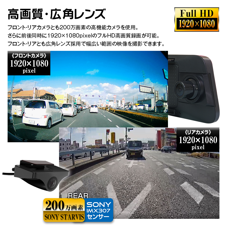 - 録画解像度:フロント:1920×1080/リア:1920×1080