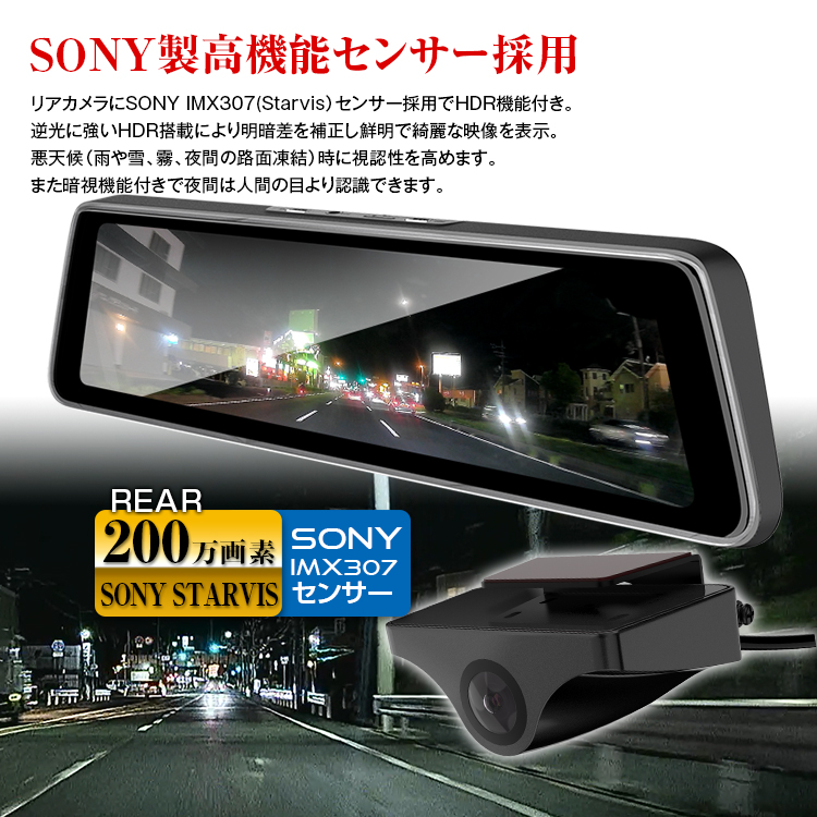 前後カメラともSONY IMX307(Starvis)センサー採用でHDR機能付き