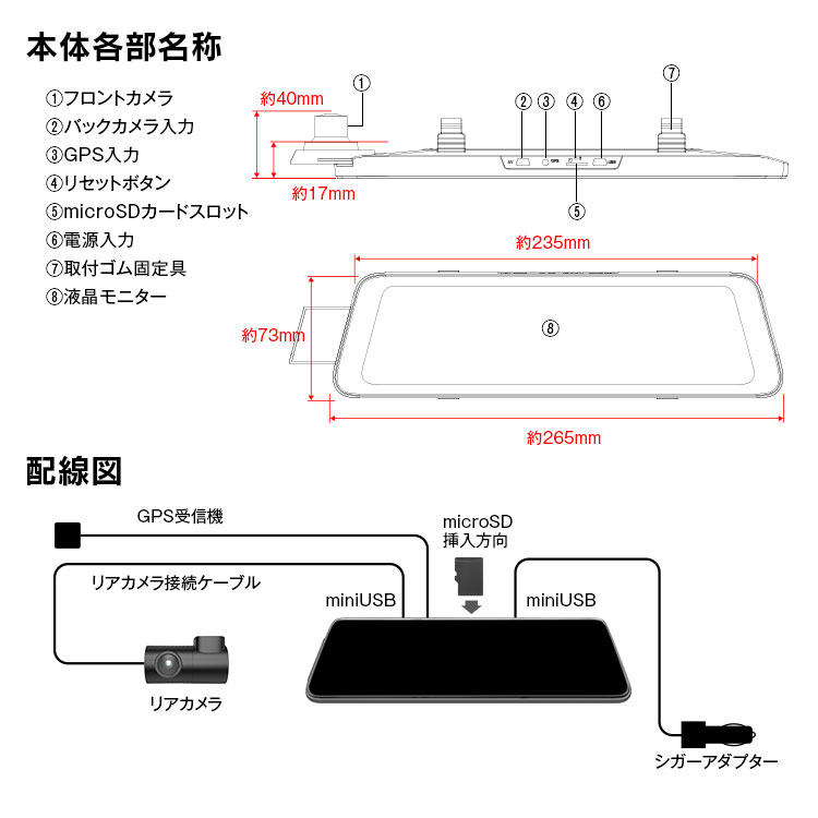 - 録画解像度:フロント:1920×1080/リア:1920×1080