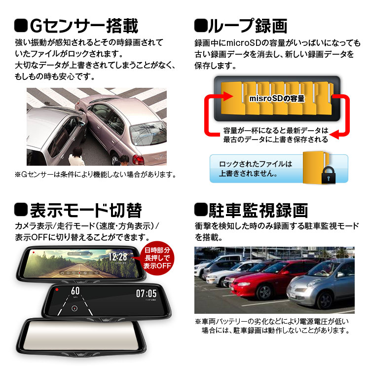 - 記録方式:常時/緊急/駐車監視モード