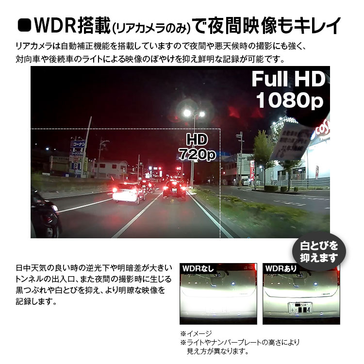 - 録画解像度:《フロント》1920×1080、《リア》1920×1080