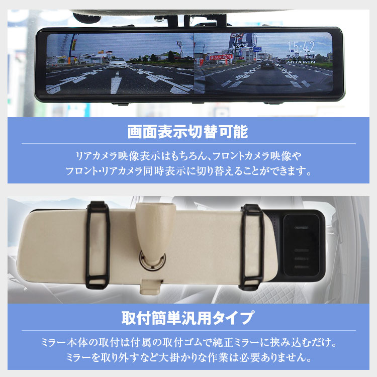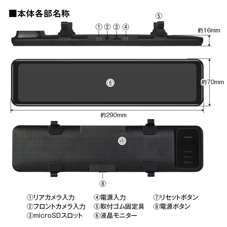 フロントカメラはミラーモニター本体と分離タイプ