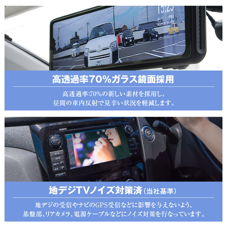 高透過率:70%の新しい素材を採用し、昼間の車内反射で見辛い状況を軽減します。