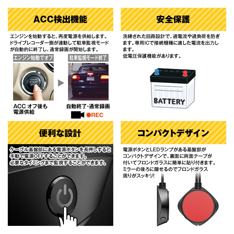 駐車監視機能対応電源ケーブル