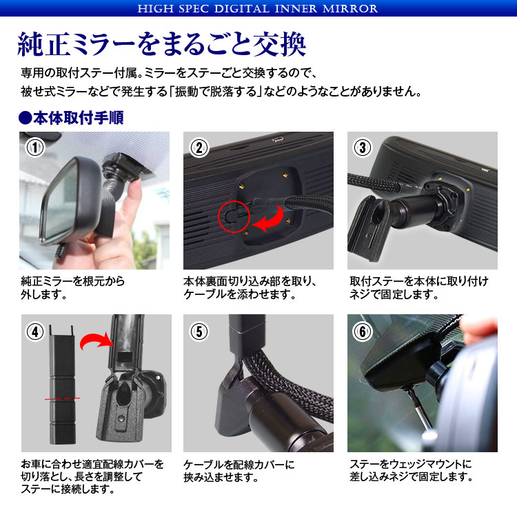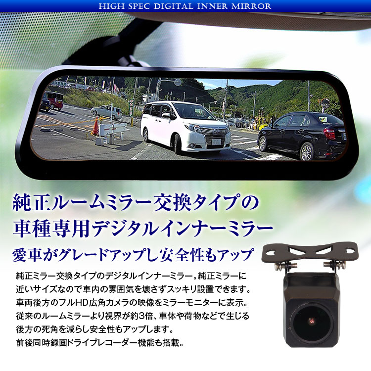 純正ルームミラー交換タイプの車種専用デジタルインナーミラー、愛車がグレードアップし安全性もアップ