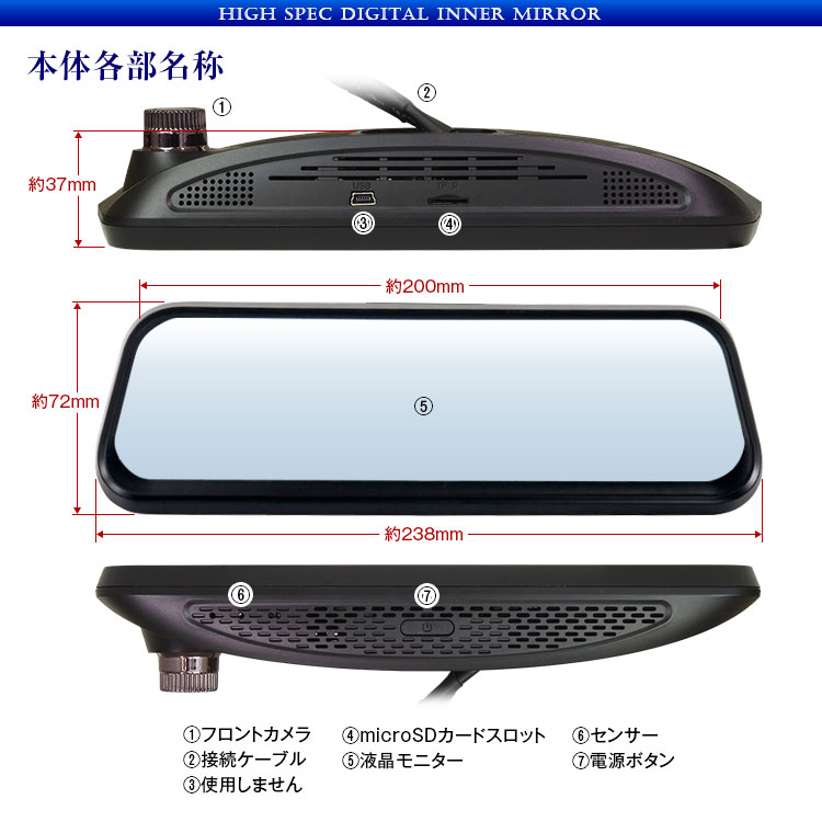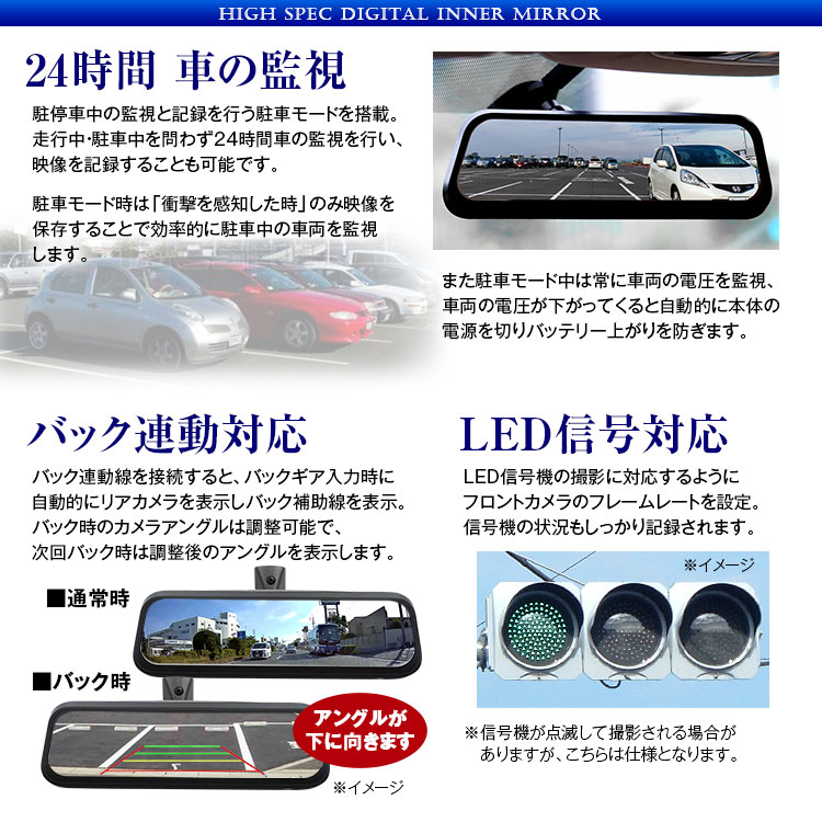 - カメラ視野角:《フロント》対角170° 《リア》対角120°