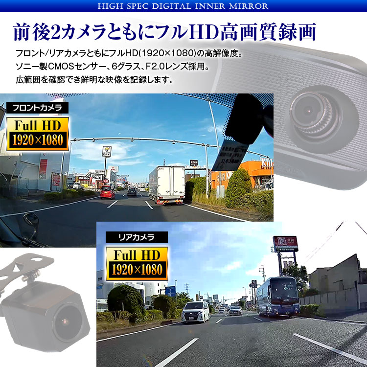 - 録画解像度:《フロント/リア》1920×1080