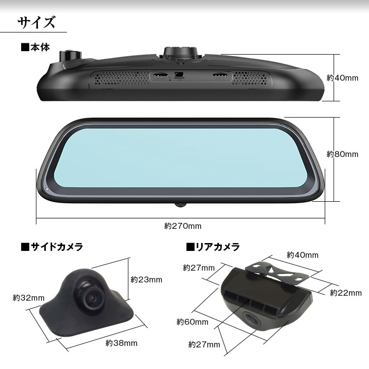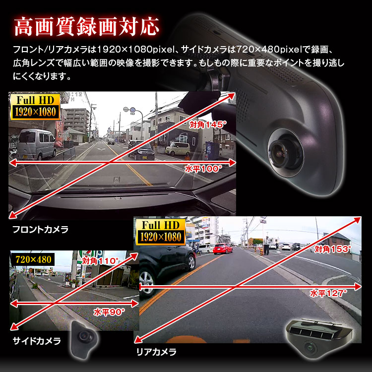 - 録画解像度:《フロント/リア》1920×1080《サイド》720×480