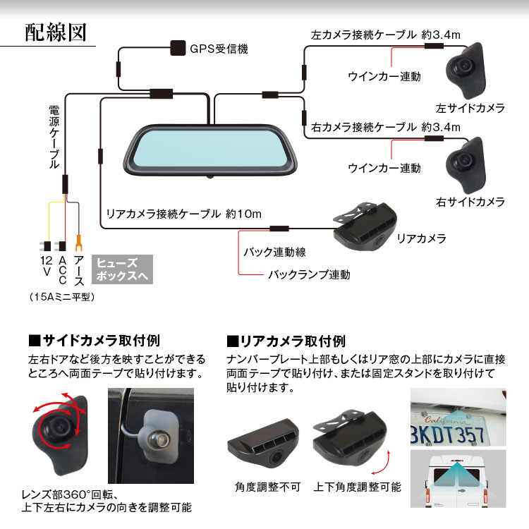 ※サイドカメラ取付にはサイドミラーに穴を開ける必要があります。