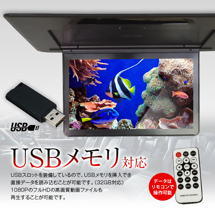 USBスロットを装備しているので、USBメモリを挿入でき直接データを読み込むことが可能です。(32GB対応)1080PのフルHDの高画質動画ファイルも再生することが可能です。