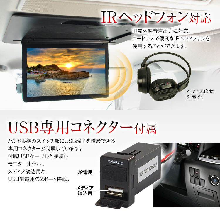車種専用設計のフリップダウンモニター。アルファード・ヴェルファイア30系にフィット。HDMI端子装備でスマホもつながります。