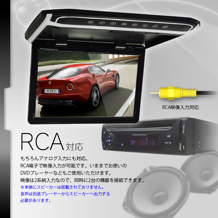 RCA音声出力を使用してスピーカーやアンプに接続する事で、音声出力が可能となります。
