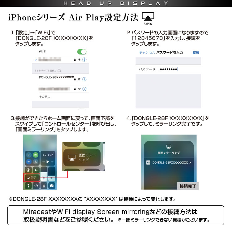 WiFi接続機能で、iPhoneのAir Play、AndroidのMirracastなどに対応していますので端末の画面を表示させることが可能です。Googleナビ、NAVITIMEなどのナビアプリ画面を表示させたり、ニコニコ動画などを楽しむことができます。