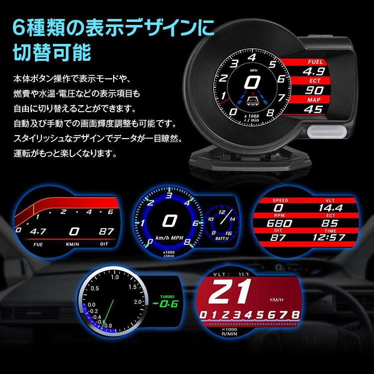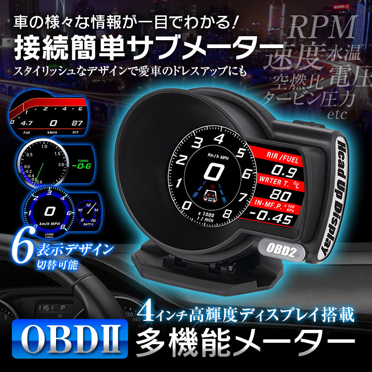 OBDII連動で車の様々な情報が一目でわかる4インチサブメーター