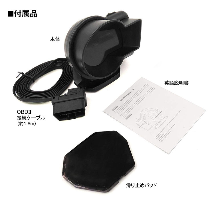 本体×1、滑り止めパッド×1、OBD2接続ケーブル×1、英語説明書×1