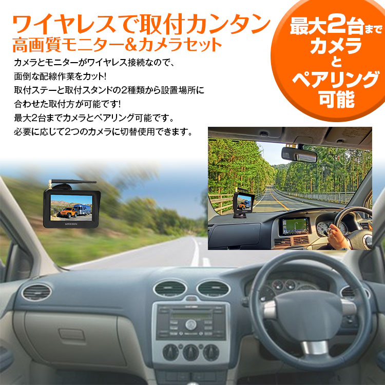 バックカメラとモニターがワイヤレス接続なので、面倒な配線の心配がありません。取り付け時、カメラからの配線を結線するだけで完了します。 初心者の方でも簡単に取り付けられます。