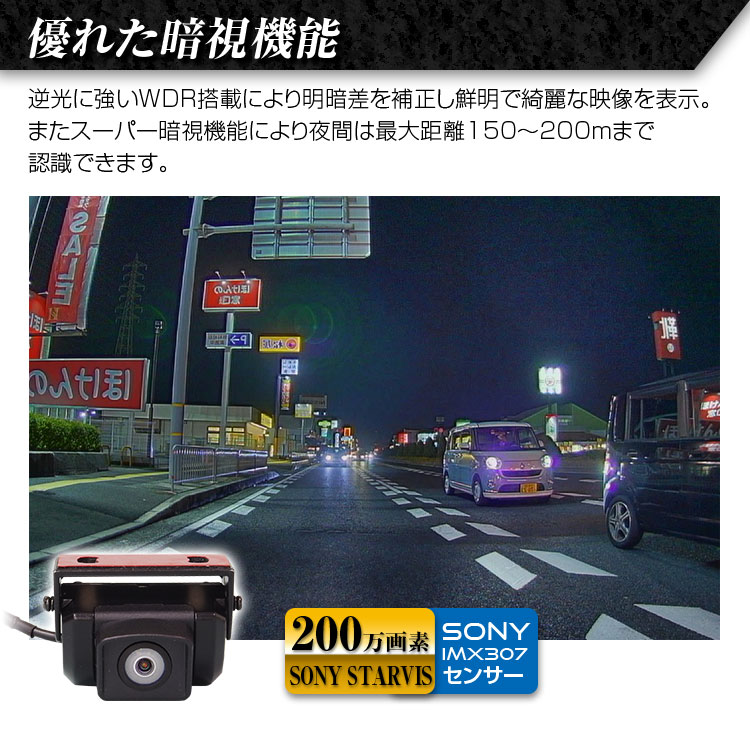 広範囲を鮮明な映像で確認可能なので後方確認の不安を解消します!スーパー暗視機能によって夜間は最大距離150〜200メートルまで認識できます。