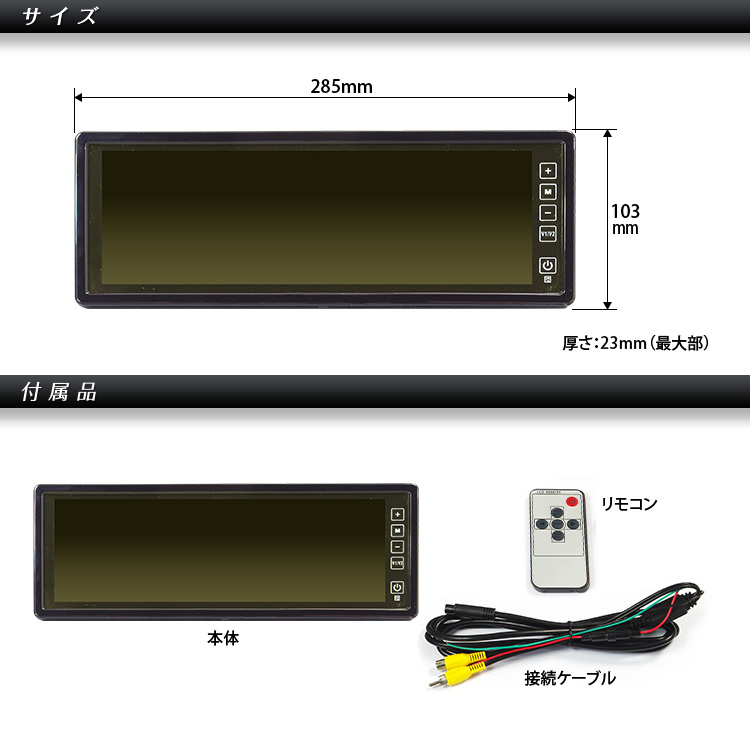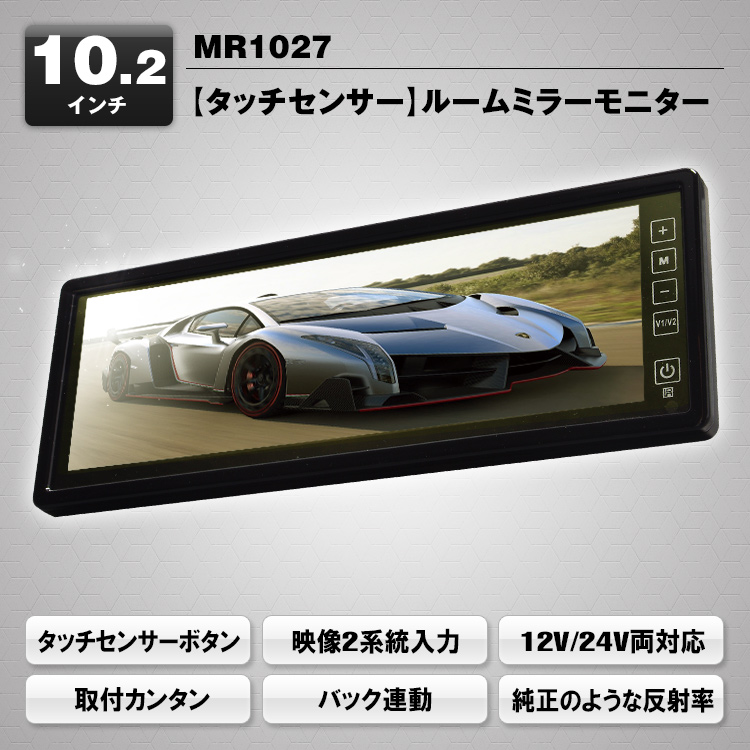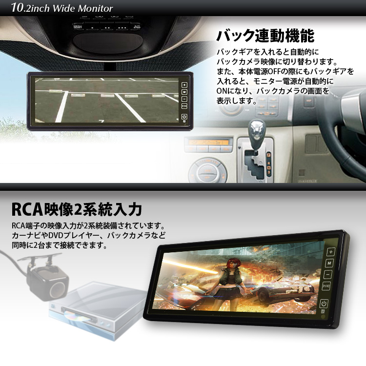 10.2インチの超ワイド画面で軽量なルームミラーモニター