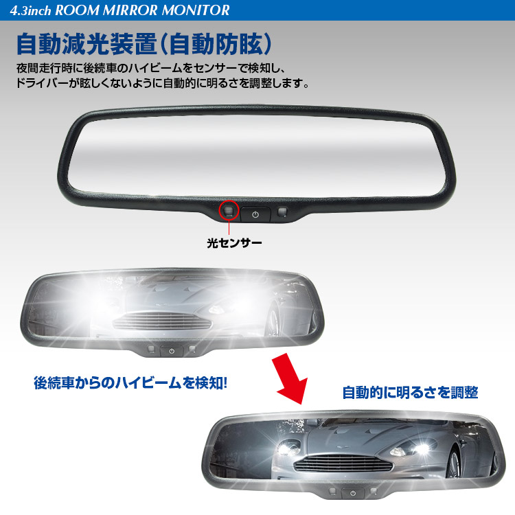 自動減光装置(自動防眩)や自動輝度調整機能を装備!
